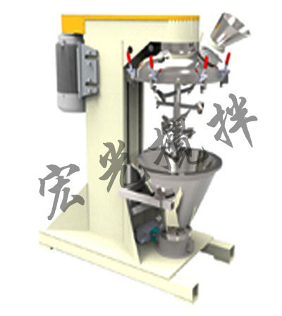 VH混合機具有錐形混合腔體并配有中心轉軸,其旋轉速度可達30米/秒。通過轉軸的速度產生離心力將產品推向混合腔體內壁。 此時腔體的錐形形狀及刀片的形狀使產品產生一個沿內壁向上的運動。產品再由特別設計的混合機蓋引導到混合機的中心,并回落到混合腔的底部,重新開始新一輪的混合過程。