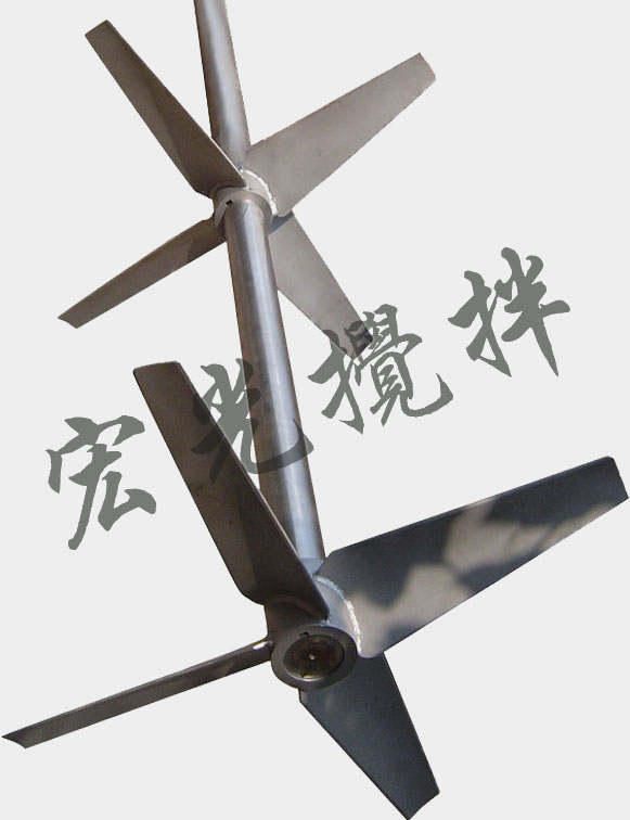 有平槳式和斜槳式兩種。平槳式攪拌器由兩片平直槳葉構(gòu)成。槳葉直徑與高度之比為 4~10,圓周速度為1.5~3m/s,所產(chǎn)生的徑向液流速度小。斜槳式攪拌器的兩葉相反折轉(zhuǎn)45°或60°,因而產(chǎn)生軸向液流。槳式攪拌器結(jié)構(gòu)簡單,常用于低粘度液體的混合以及固體微粒的溶解和懸浮。