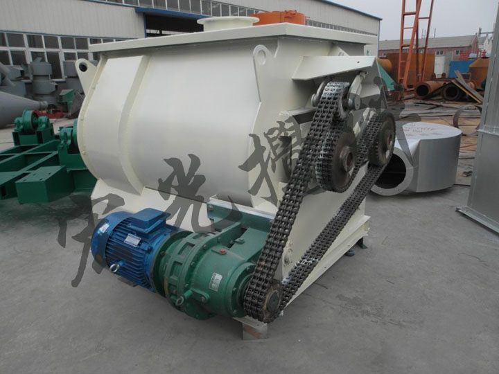 本系列混合機以強烈、高效混合為特點、臥式筒體內兩根攪拌等速反向旋轉,上特殊布置的槳葉確保物料徑向、環向、軸向三向運動,形成復合循環,在短時間內達到均勻混合。
